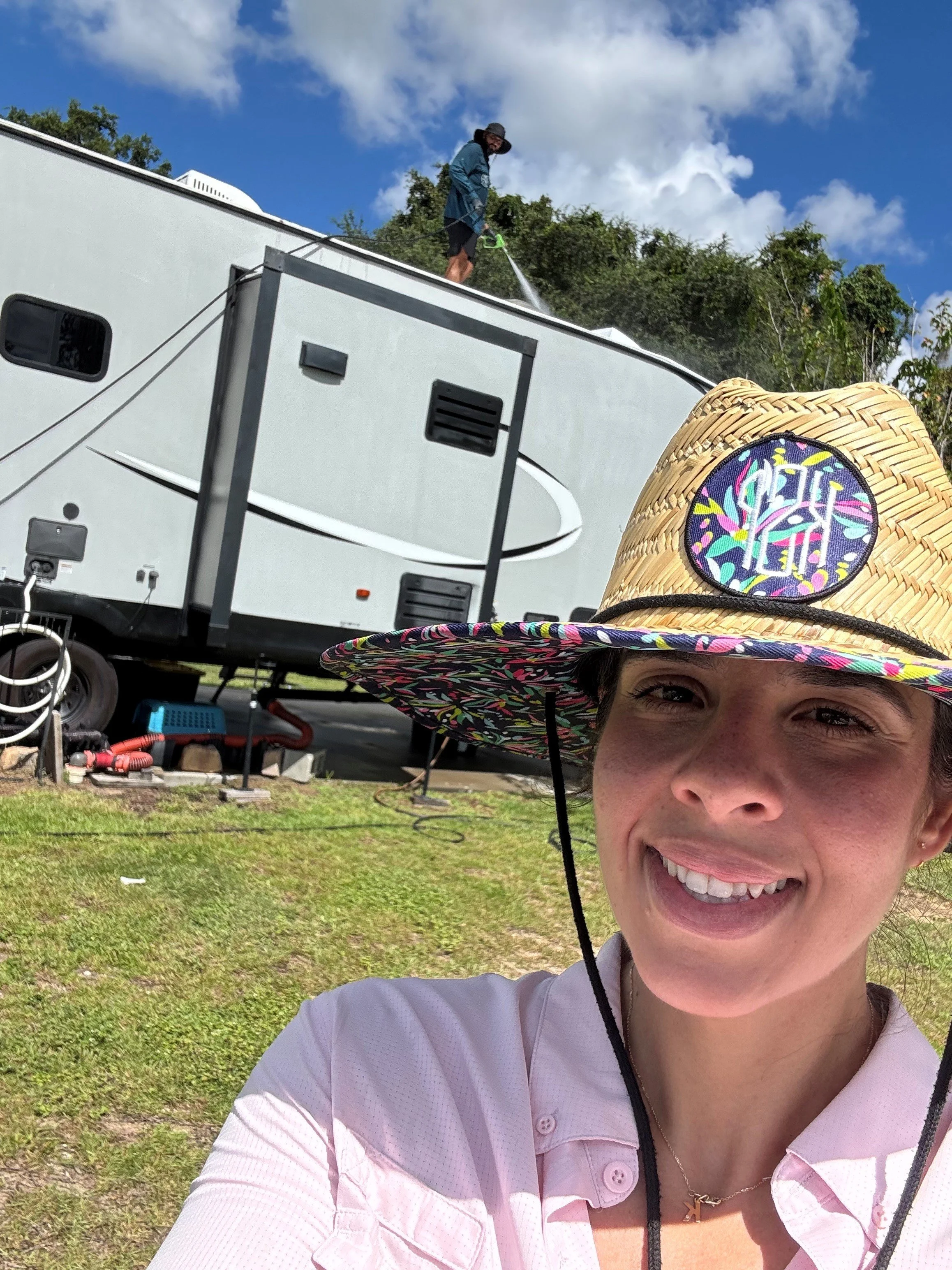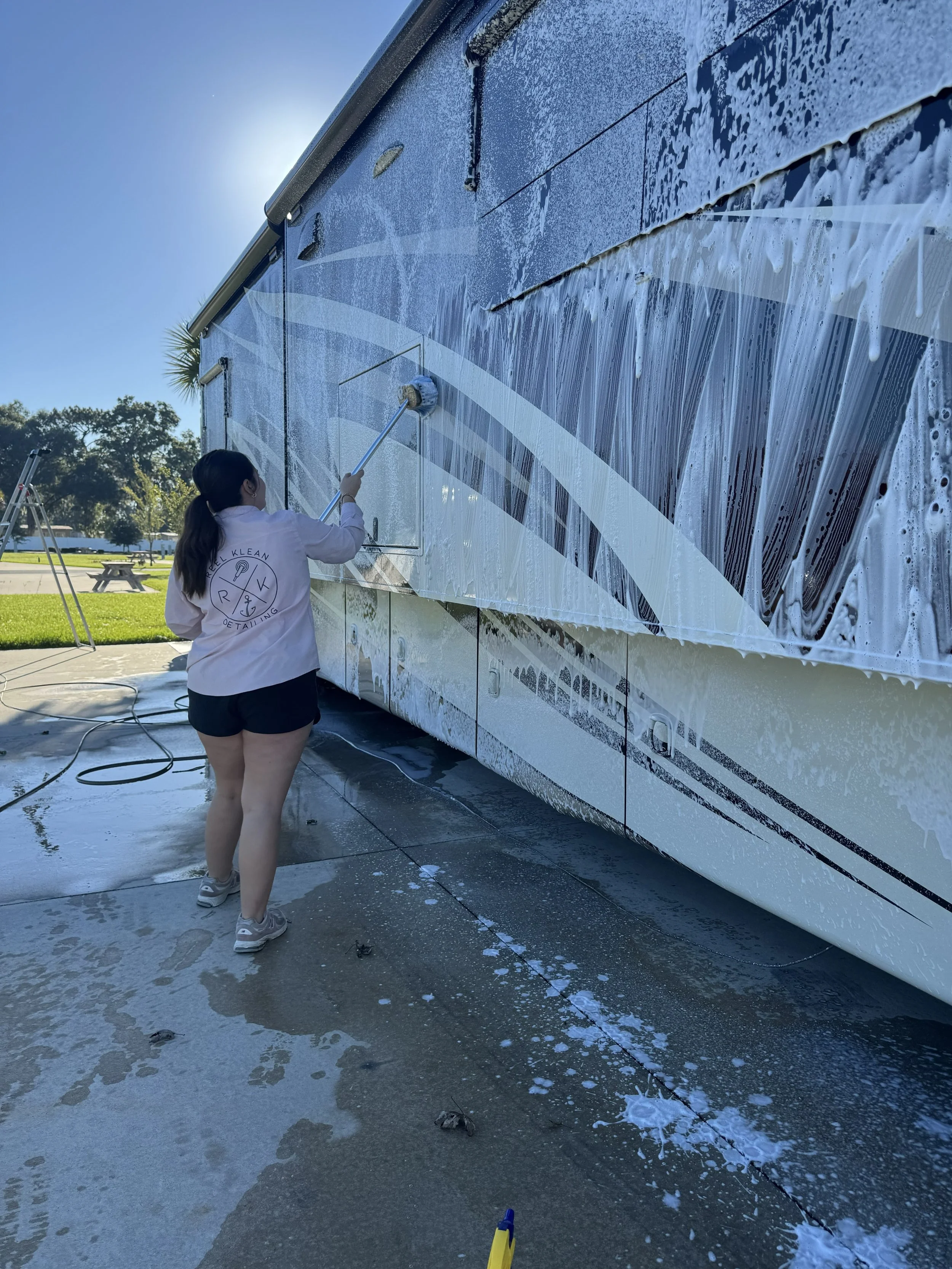 Miley, our youngest daughter (now 17), helping with a Reel Klean RV Wash