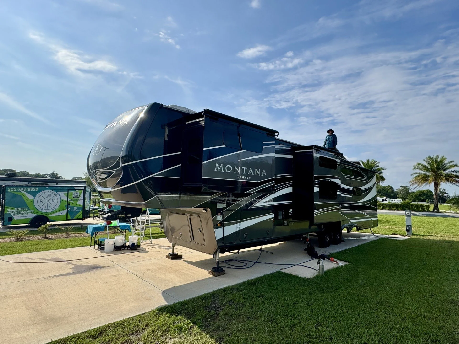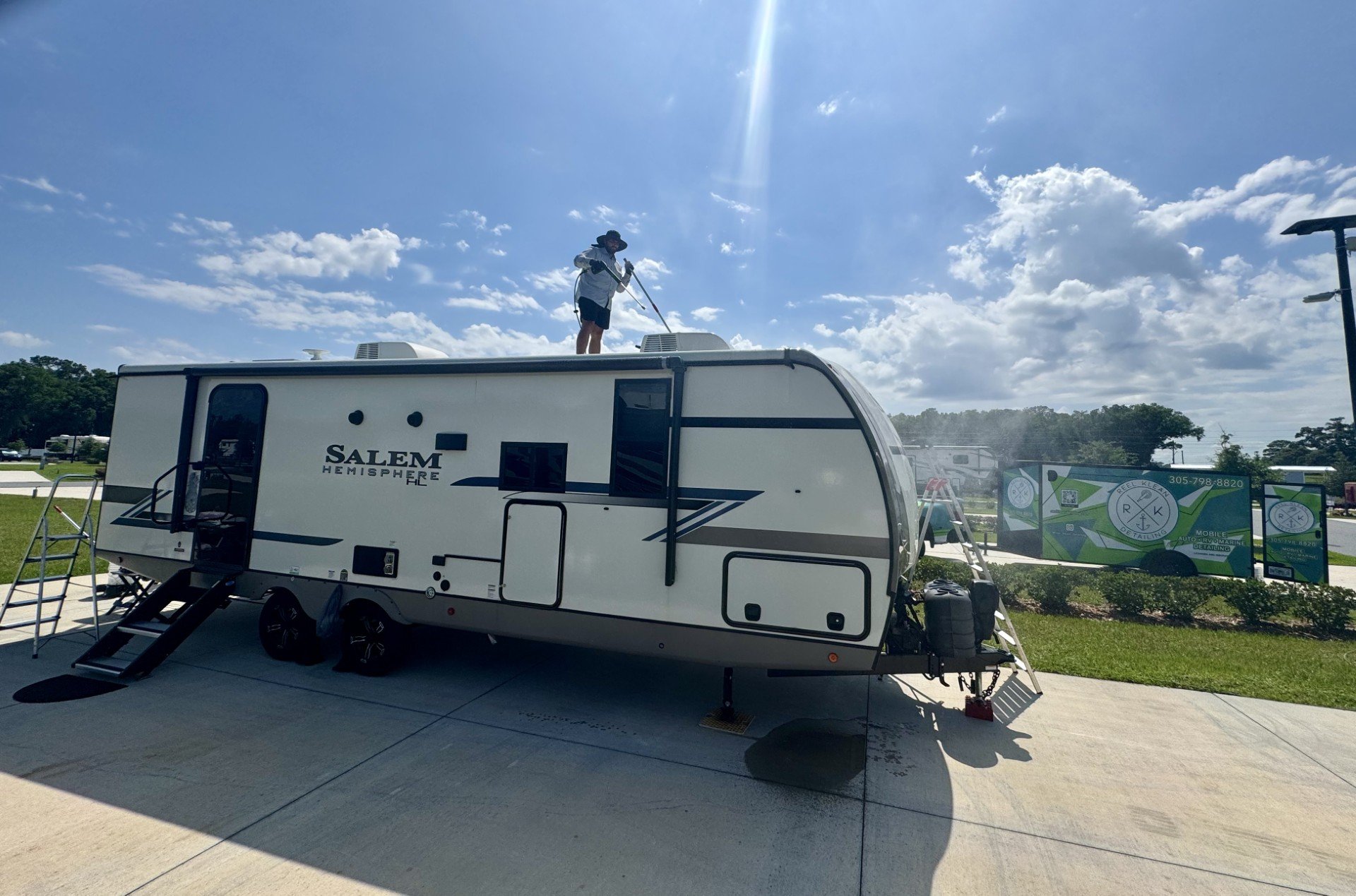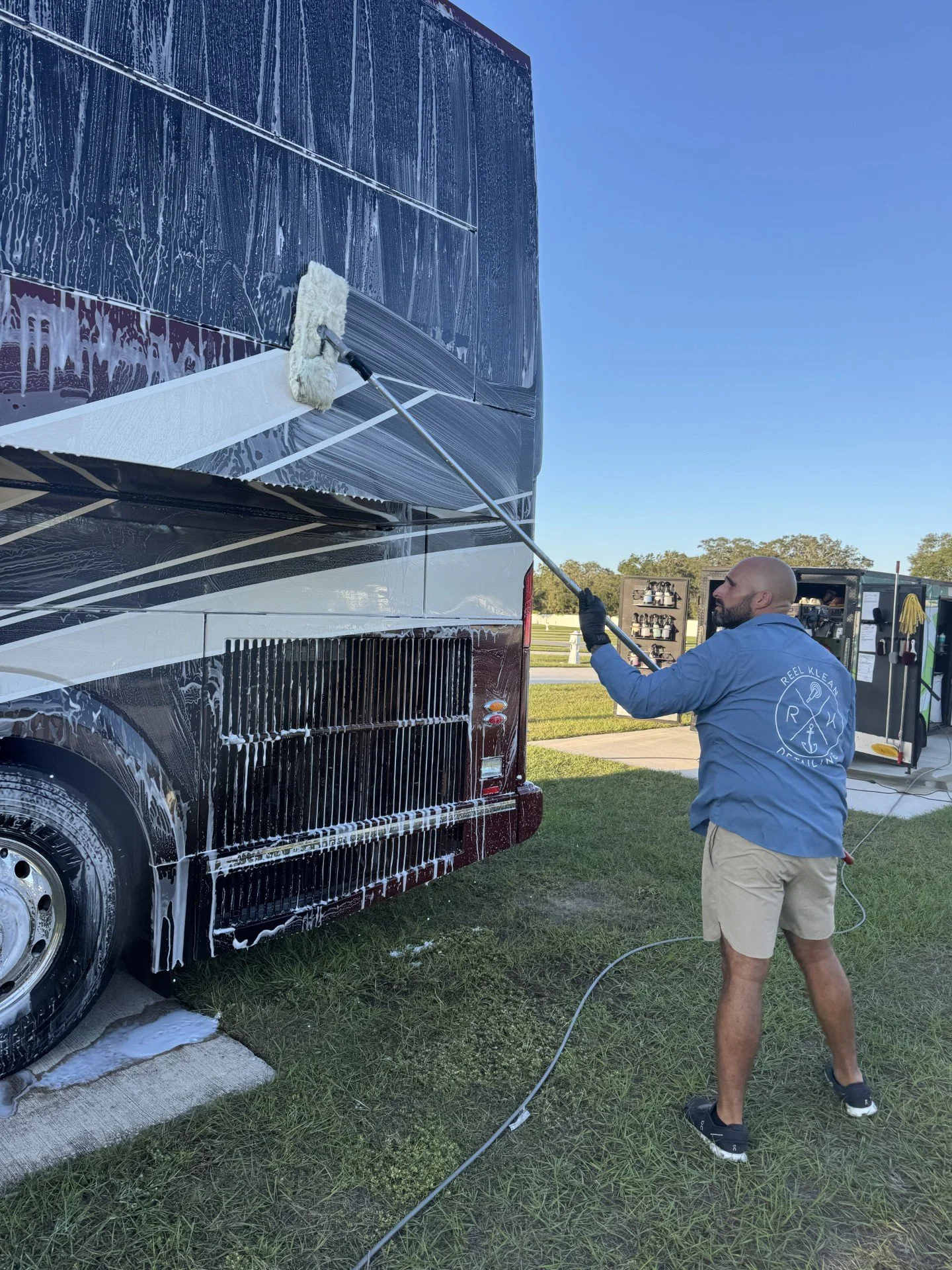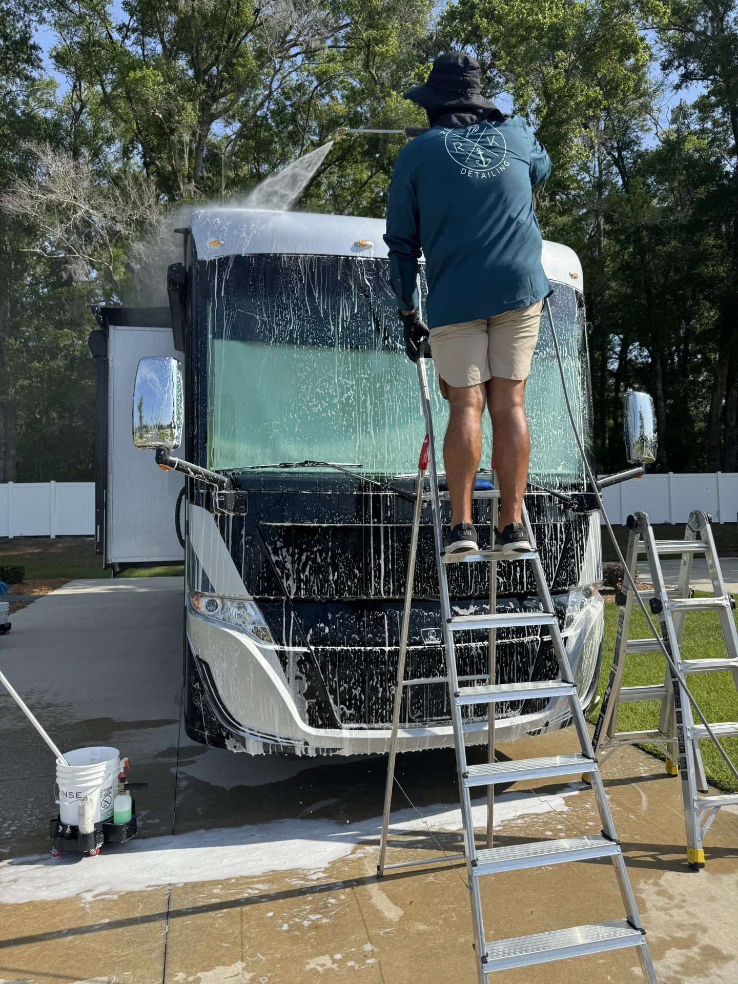 Allow us to safeguard your investment and provide your coach with the care it rightfully deserves. Regular washing and protection will enhance the longevity of your coach against the harsh elements and contaminants it will encounter during your travels.